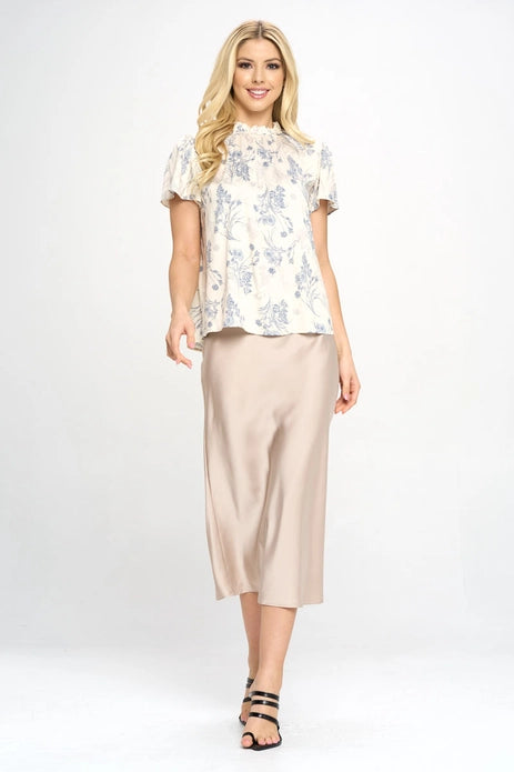 Floral Top with Ruffle Neck