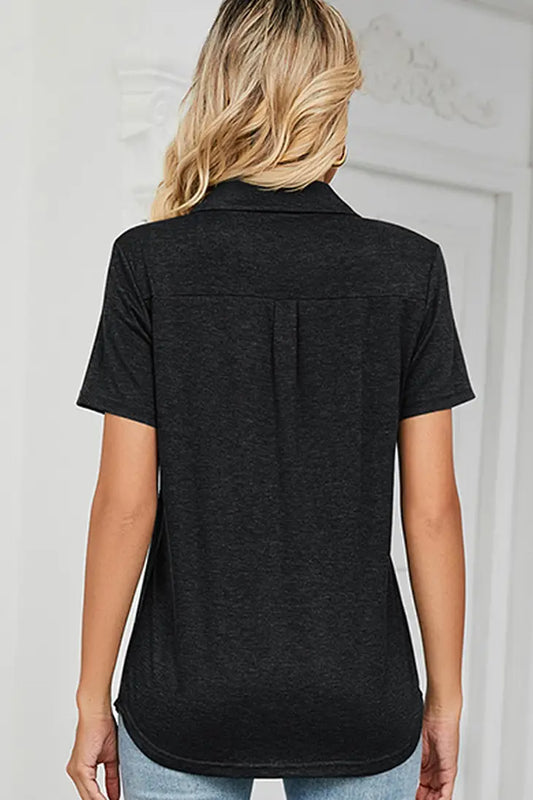 SHORT SLEEVE POCKET COLLAR TOP