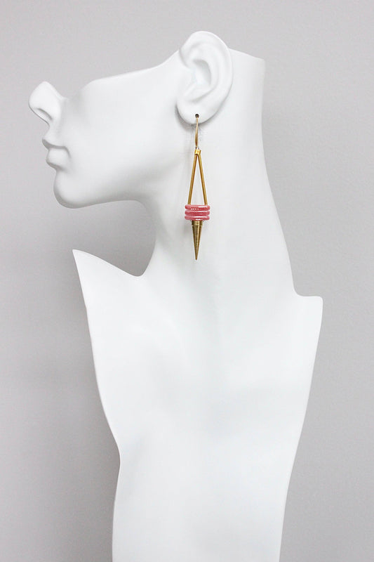 Painted Brass Leaf Wood Dangle Earring Circle Stud Baby Blue
