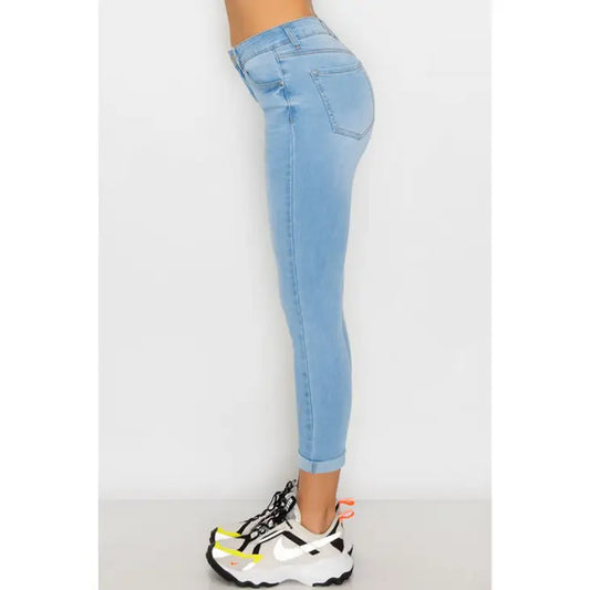 ROLLED CUFF CAPRI DENIM PANTS
