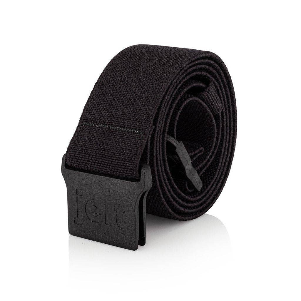 Gear up for your next adventure with the all black Venture Adjustable Stretch Belt from Jelt. This lightweight, waterproof belt is designed to be durable and rugged. It’s strong enough to hold important outdoor accessories, such as two-way radios and bear spray, without budging. The Venture Belt is supported by a grippy gel along the inside that keeps it securely in place. That means it can work with all kinds of gear (with or without belt loops), such as hiking shorts, ski pants and fishing waders. Lovers of the great outdoors appreciate that the eco-friendly, elasticized webbing is made from recycled plastic bottles. When you’re jetting off to your next destination, this metal-free belt for travel makes it easier to move through airport security.